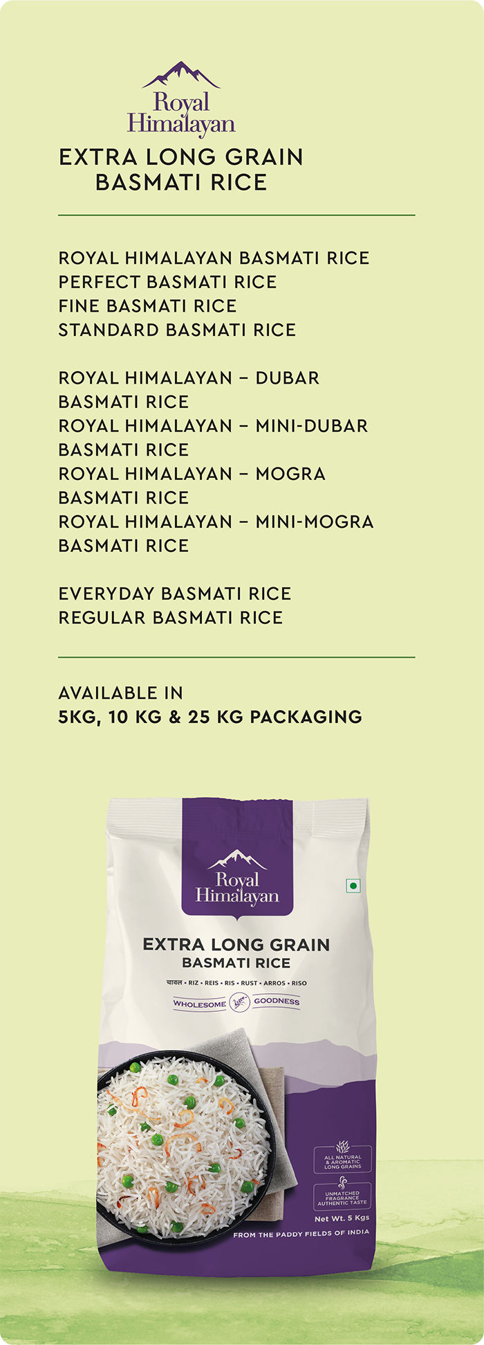 Jasmer’s true range of Indian Basmati comes from the eternal foothills of the Himalayas. Grown and nurtured in the most fertile fields of Haryana, it is rare gift of nature. Every grain of the pearly white rice is aged for 1-2 year in the purest form. Known for its longest grain, distinctive aroma and incredible flavour, it’s the food connoisseurs choice and commands a premium. For true Basmati, it’s only Jasmer.